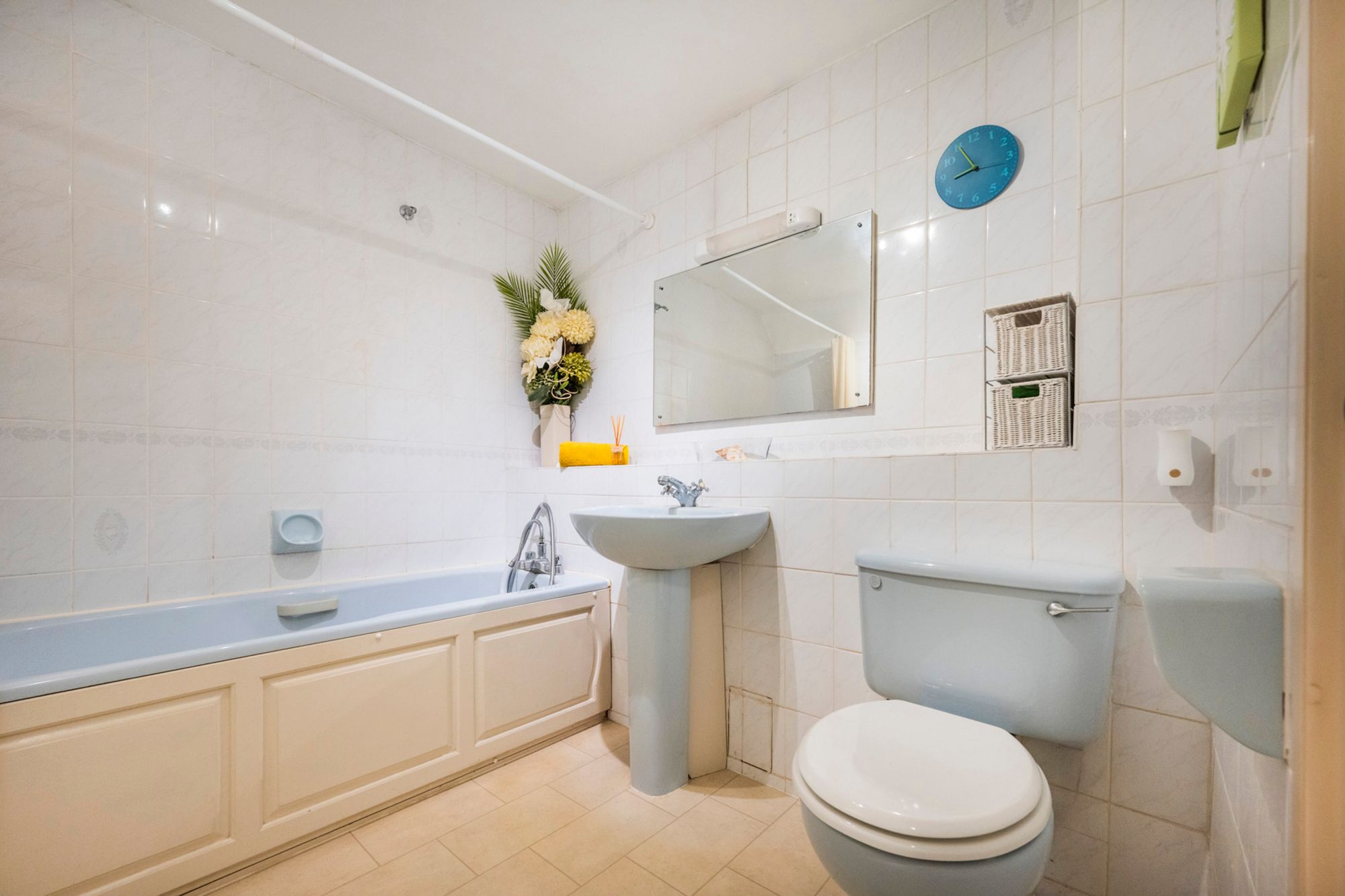 Timeless Elegance and Coastal Charm A true nod to timeless elegance, the bathroom features a heritage-inspired suite in a delicate, duck-egg hue. This muted pastel palette adds a layer of character and charm, offering a sophisticated alternative to standard white while maintaining a sense of refined, period-correct style. This delicate and vintage-chic sanctuary is anchored by a full-sized bath with an integrated shower, creating a versatile space that functions as both a refreshing morning retreat and a tranquil evening escape.