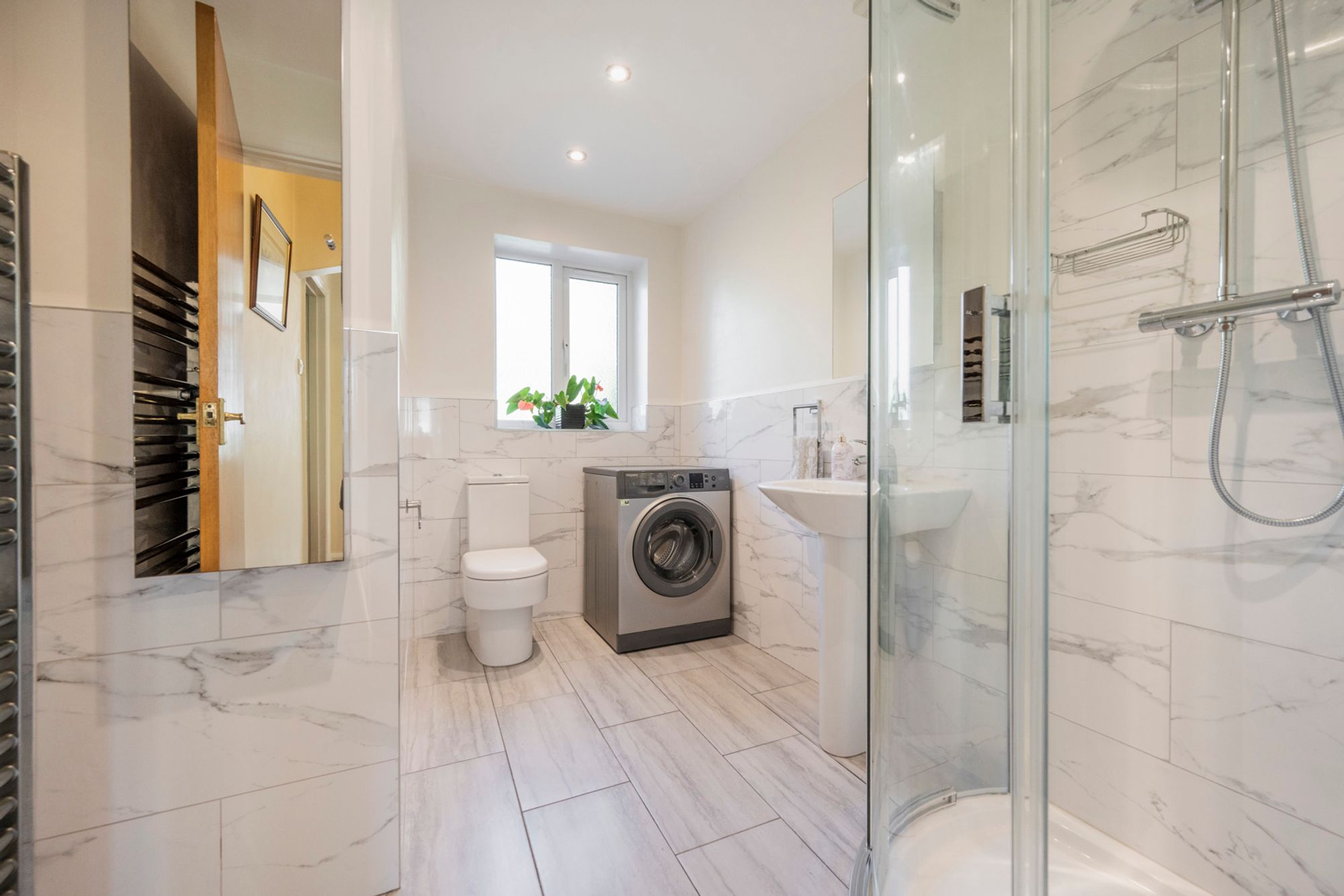 Upstairs, five good sized bedrooms, two with built-in wardrobes and all with neutral decor, ensuring plenty of storage and a restful ambience. The three-piece family bathroom is also refitted with luxurious marble-effect tiles.