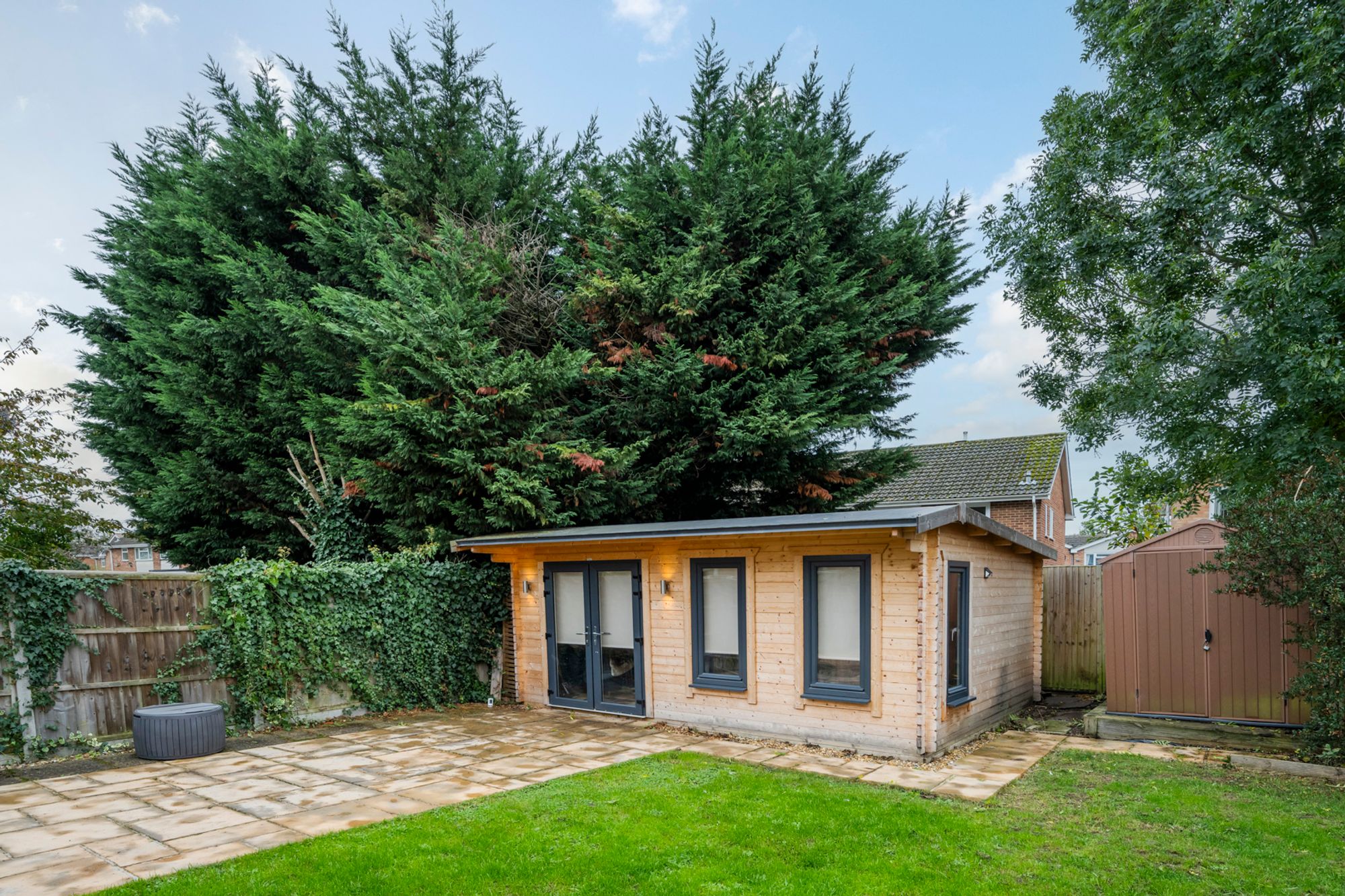 The property benefits from a neat rear garden, offering a versatile blank canvas for landscaping or family play. A patio area provides the perfect setting for al fresco dining and entertaining, while a storage shed ensures practicality. Convenient rear access to the garage adds further ease for day-to-day living.